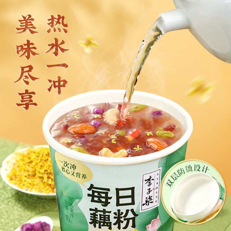 57¥ CZ001 23rkfsowOhJ¥ https://m.tb.cn/h.7Y5wR5s 李子柒每日藕粉30g6杯桂花坚果味藕粉羹杯装营养早餐代餐懒人冲饮