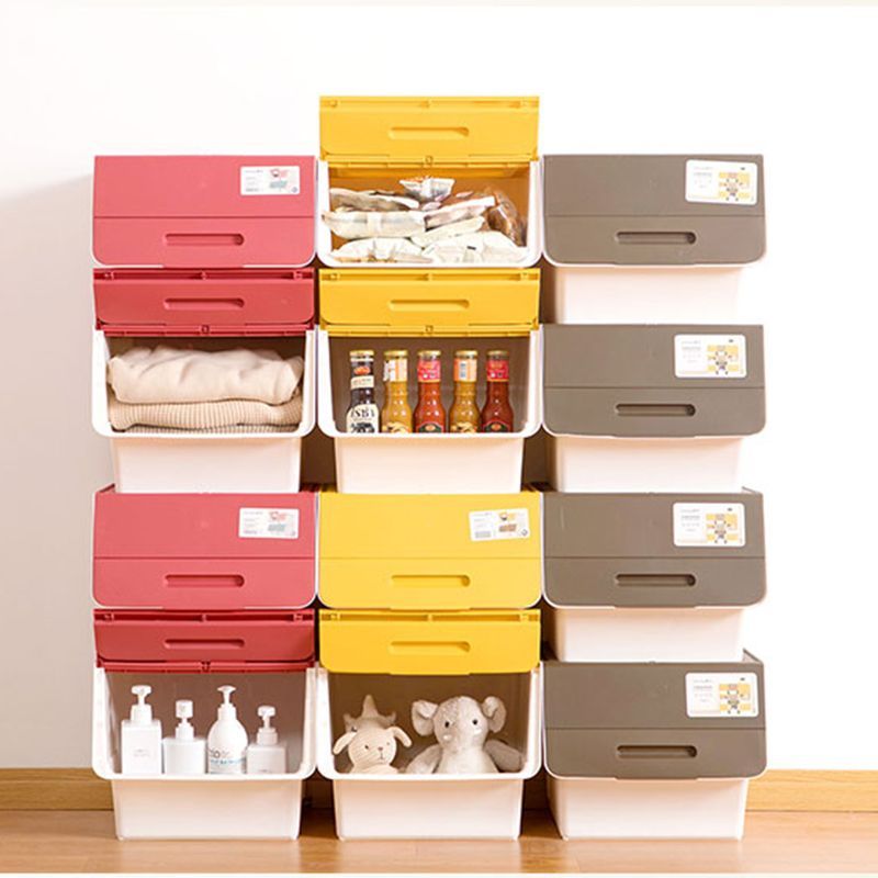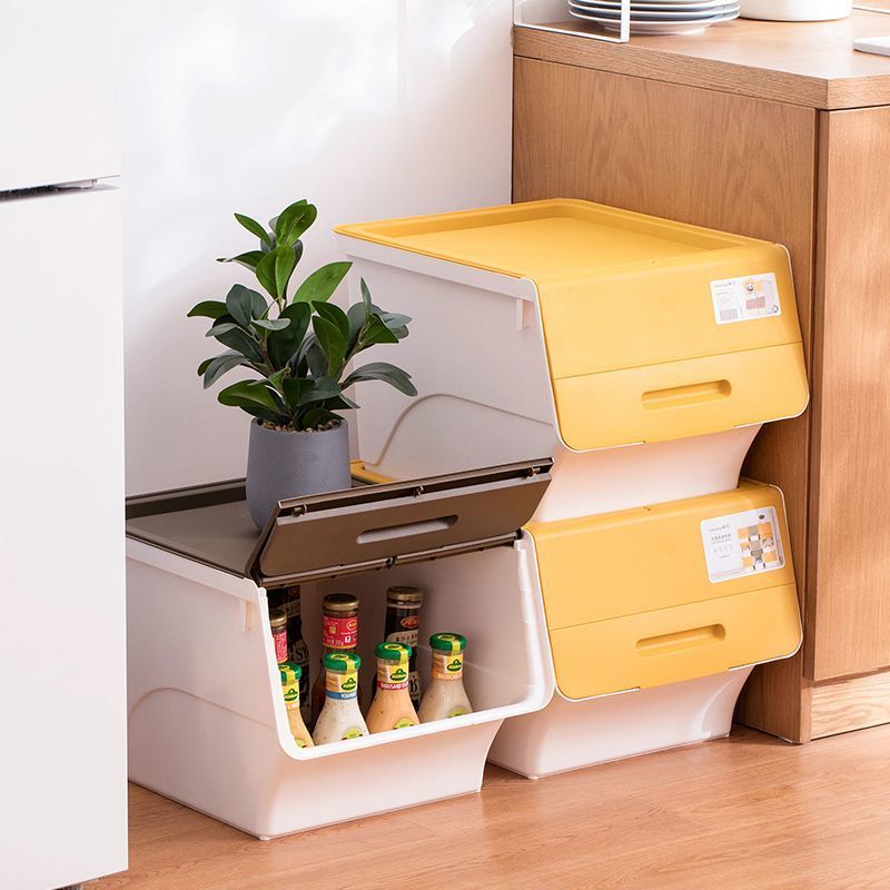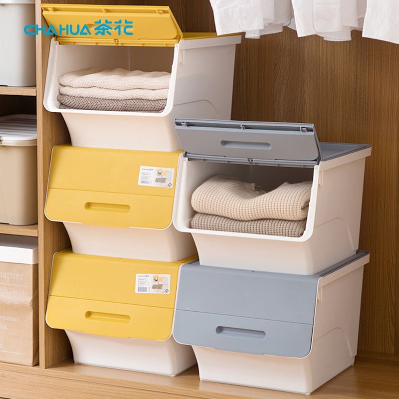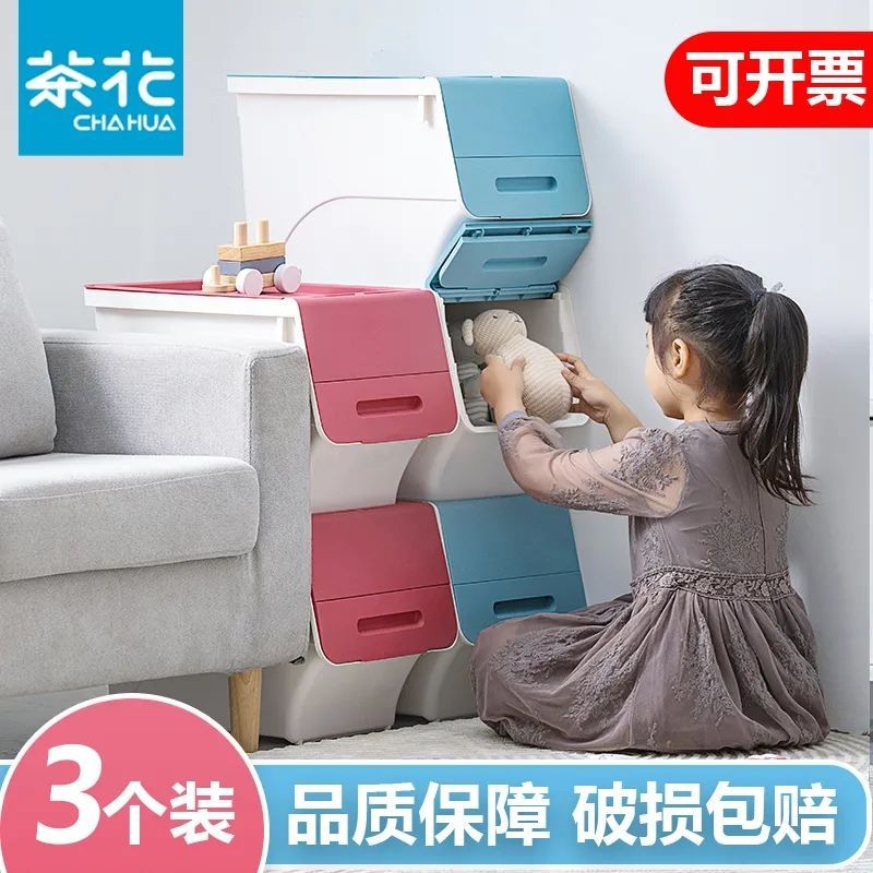 茶花收纳箱加厚翻盖家用大容量儿童玩具斜口储物收纳盒整理箱34L